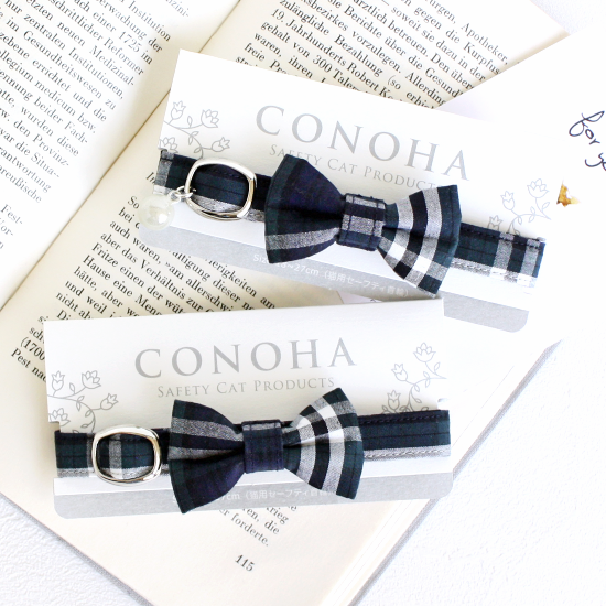 タータンチェックのリボン付き猫首輪