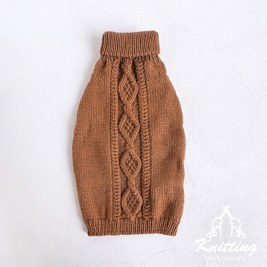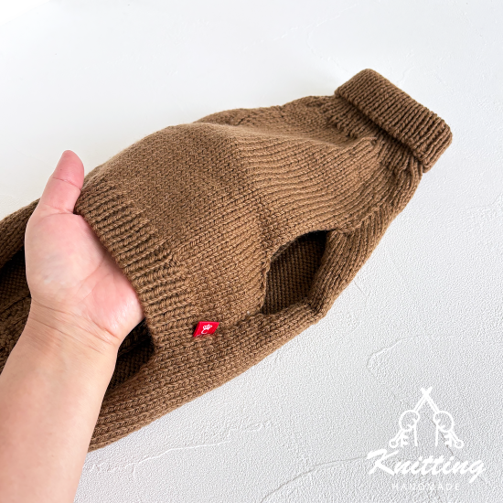 ◯サイズ:フリーサイズ 標準サイズ(3〜5キロくらい)の成猫用です。モデル猫(オス)は4.3キロです。 ※こちらの白いセーターは「アラン模様(白)」です。色柄が違いますのでサイズ確認用としてご覧ください。 《平置きサイズ》首まわり:10cm 胴回り:21cm 着丈:37cm