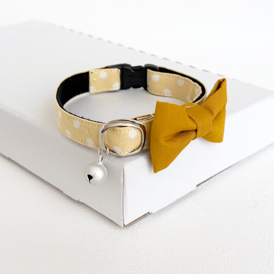 カスタードクリームドット柄にマスタードのリボン