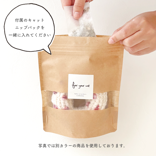- キャットニップパックは猫ちゃんに直接与えないでください。誤飲・破損の原因となります。パックは破らずそのままご使用ください。