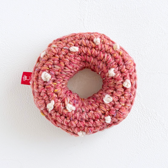 1つずつ丁寧に編み上げたドーナツの中には綿がたっぷりと詰まっており、猫ちゃんが抱えたり、転がしたり、ケリケリしたりして楽しめます。