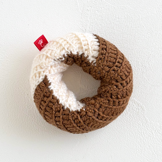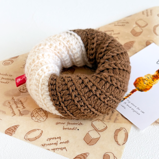 チョコ生地にホワイトチョコをとろりとかけた、美味しそうなフレンチクルーラーです。見た目もかわいらしく、遊んで飾って楽しい猫用おもちゃです。