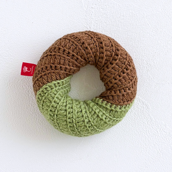 1つずつ丁寧に編み上げたドーナツの中には綿がたっぷりと詰まっており、猫ちゃんが抱えたり、転がしたり、ケリケリしたりして楽しめます。