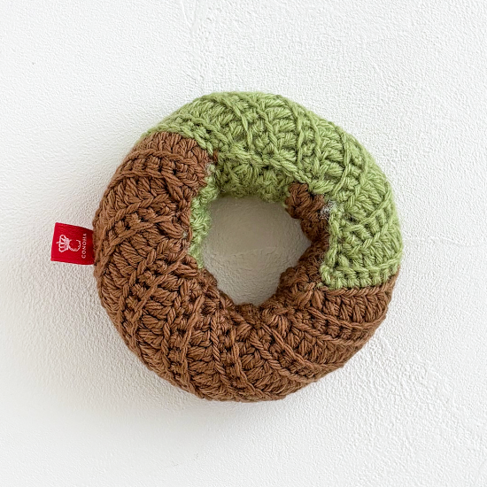 チョコ生地に抹茶チョコをとろりとかけた、美味しそうなフレンチクルーラーです。見た目もかわいらしく、遊んで飾って楽しい猫用おもちゃです。