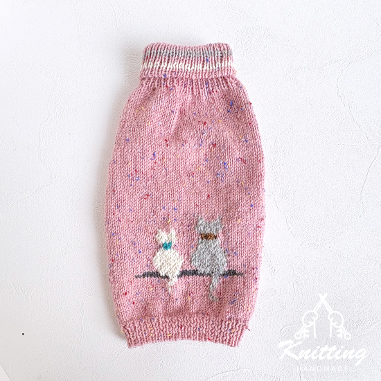 ◯サイズ:フリーサイズ 標準サイズ(3〜5キロくらい)の成猫用です。モデル猫(オス)は4.3キロです。 ※こちらの白いセーターは「アラン模様(白)」です。色柄が違いますのでサイズ確認用としてご覧ください。 《平置きサイズ》首まわり:10cm 胴回り:21cm 着丈:37cm
