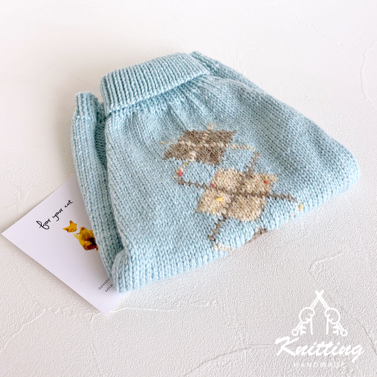 ◯サイズ:フリーサイズ 標準サイズ(3〜5キロくらい)の成猫用です。モデル猫(オス)は4.3キロです。 ※モデル猫ちゃんが着ているのはこちらのアラン模様(白)のセーターです。 《平置きサイズ》首まわり:10cm 胴回り:21cm 着丈:37cm