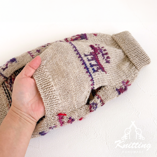 ◯サイズ:フリーサイズ 標準サイズ(3〜5キロくらい)の成猫用です。モデル猫(オス)は4.3キロです。 ※こちらの白いセーターは「アラン模様(白)」です。色柄が違いますのでサイズ確認用としてご覧ください。 《平置きサイズ》首まわり:10cm 胴回り:21cm 着丈:35cm
